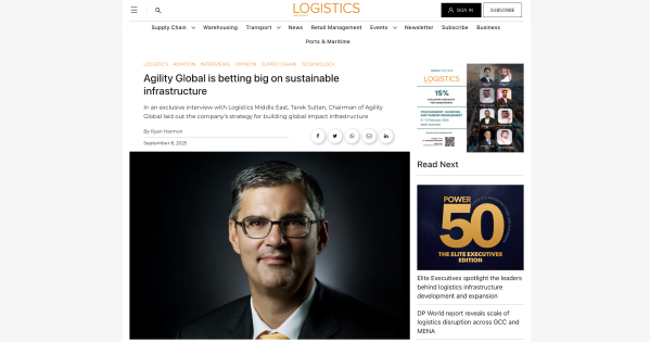Learn MoreIn an exclusive interview with Logistics Middle East, Tarek Sultan, Chairman of Agility Global laid out the company’s strategy for building global impact infrastructure